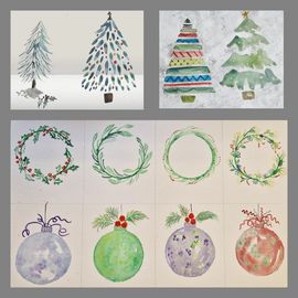 Christmas floral wreathes with pen and ink techniques tags, book marks and card designs